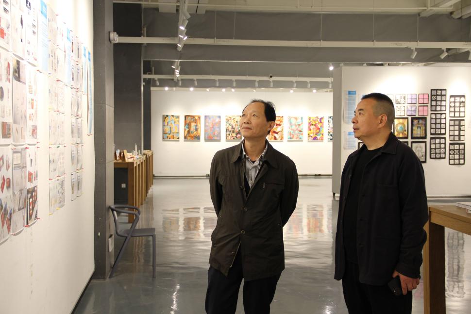 座谈交流前,郑必法一行参观了“设计向东”展览馆,观赏了员工课程作业展,领略了创意设计领域的深厚底蕴与前沿成果。