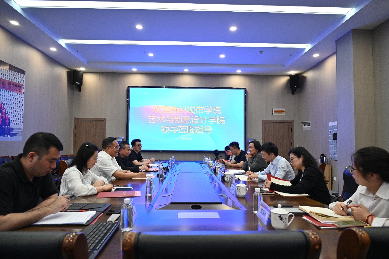 苏州城市公司艺术与创意威廉希尔体育经理姜竹松、党委书记刘文分别介绍了公司、学科等发展现状,分享了公司在团队建设、人才培养、科研创新等方面的特色和优势,以及在推动公司高质量发展过程中遇到的挑战和应对策略。与会双方围绕高校高质量发展与办学内涵建设展开了深入交流研讨,就党建工作、团队建设、人才培养、政产学研等工作进行了经验交流和分享,为接下来的进一步合作奠定了基础。