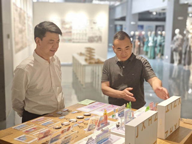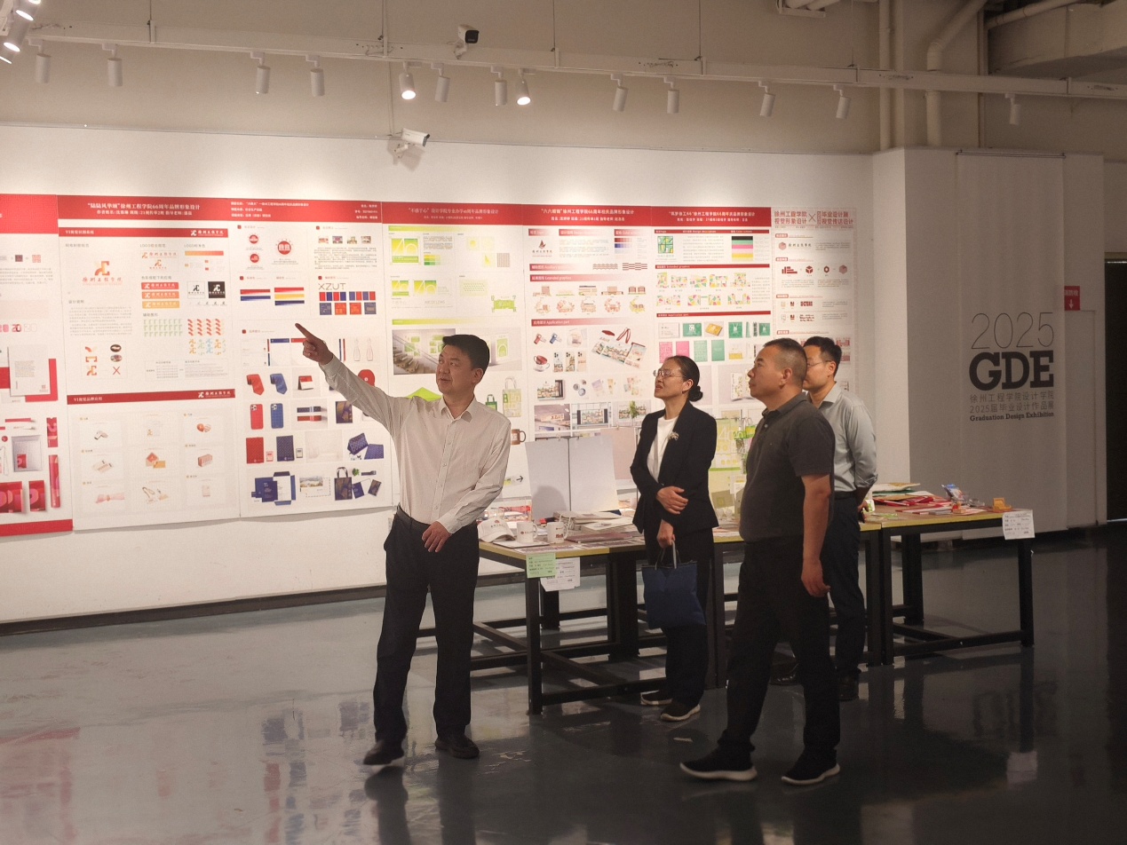 参观过程中,刘洋书记对展览给予充分肯定。他指出,毕业设计与公司文创产品相结合的形式非常好,以公司建筑标识为例,其独特的设计让人一眼就能感受到鲜明的独特性,这种将专业设计与公司文化元素深度融合的方式值得赞扬。同时,刘洋高度认可毕业设计与彭城七里项目的结合,他强调,这种合作具有重要意义,有效推动了产教合作,为员工实践能力的提升和产学研融合发展搭建了良好平台。