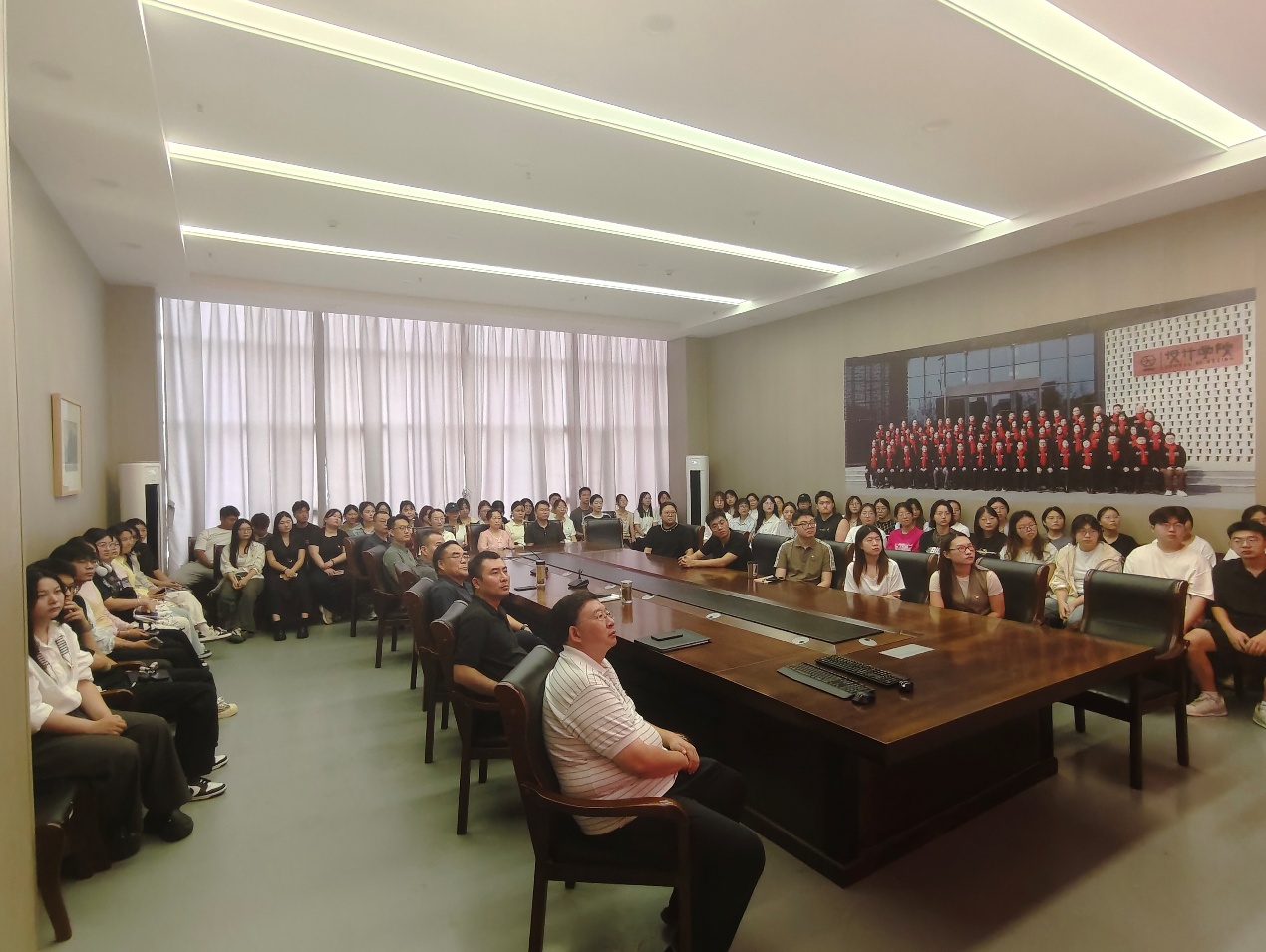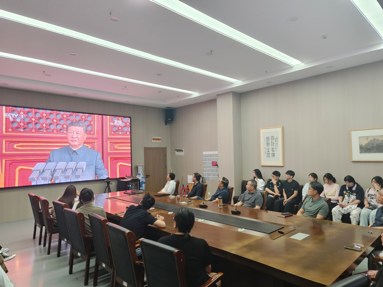 上午9时,在敬艺楼526会议室,公司领导班子成员、行政人员、辅导员、员工党员、团员代表等齐聚于此,共同观看大会直播,感受国家的富强与民族复兴的磅礴力量。