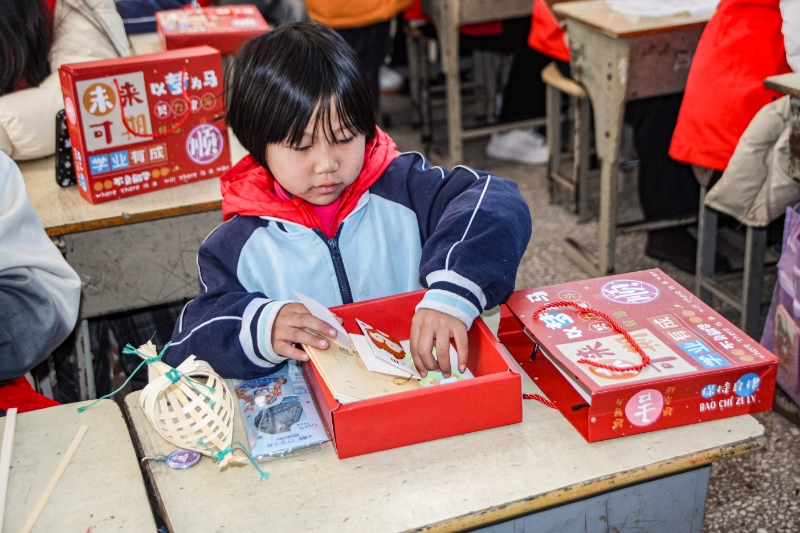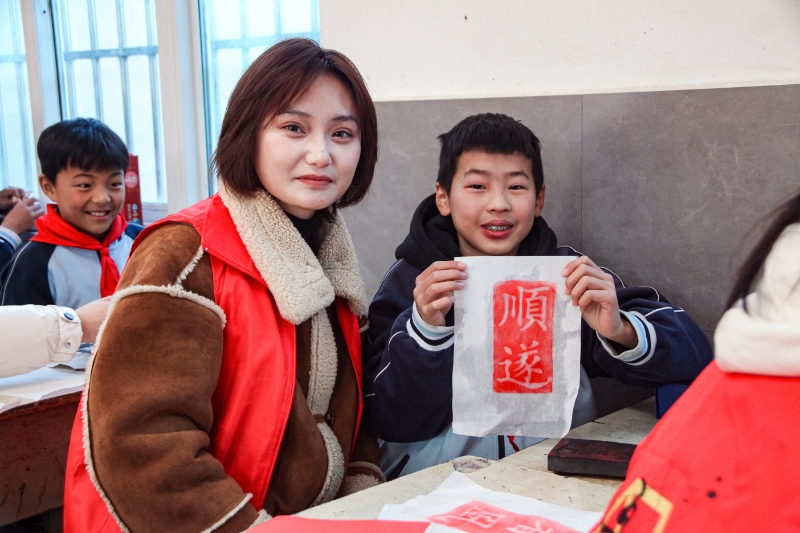 除了物质上的帮助,志愿者们还专门设计了丰富多样的非遗体验课程,以剪纸、拓印、竹编等传统手工艺为载体,带领孩子们感受中华优秀传统文化的魅力。在轻松愉快的互动中,志愿者们耐心指导、暖心陪伴,让孩子们在动手实践中体会技艺之美,也在他们心中播下文化传承的种子。