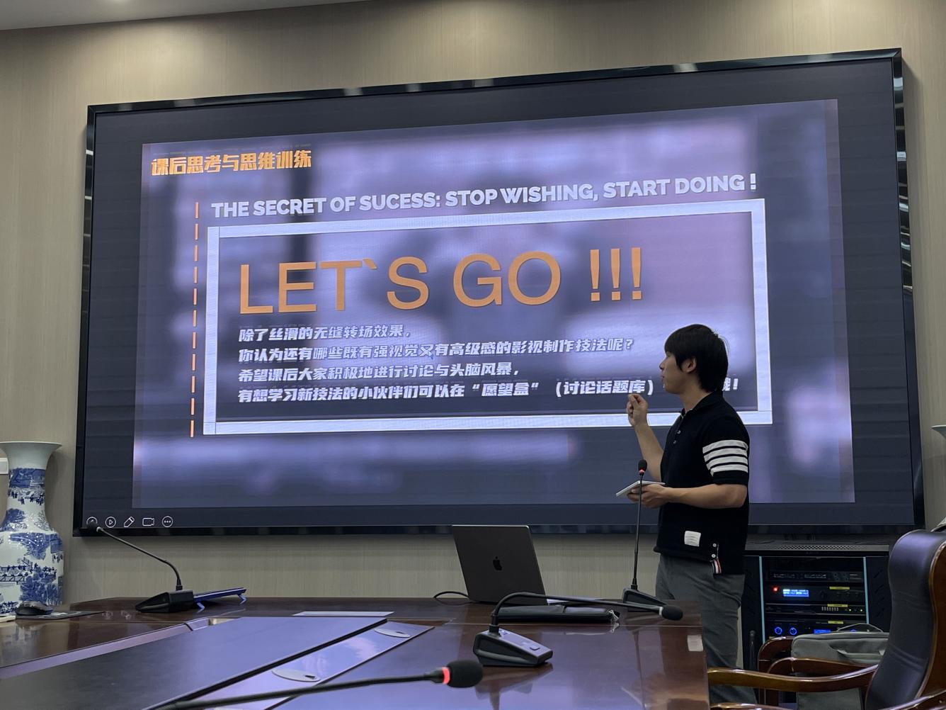 本次博士沙龙首先由获得校第十七届青年教师教学竞赛一等奖的公司青年教师潘璐博士进行《计算机辅助设计二》课程中“影视转场技巧”的授课示范,并分享了课程编排、重难点案例讲解、思政元素融合以及教学反思等环节的课程设计理念与教学心得,获得了与会老师的一致好评。