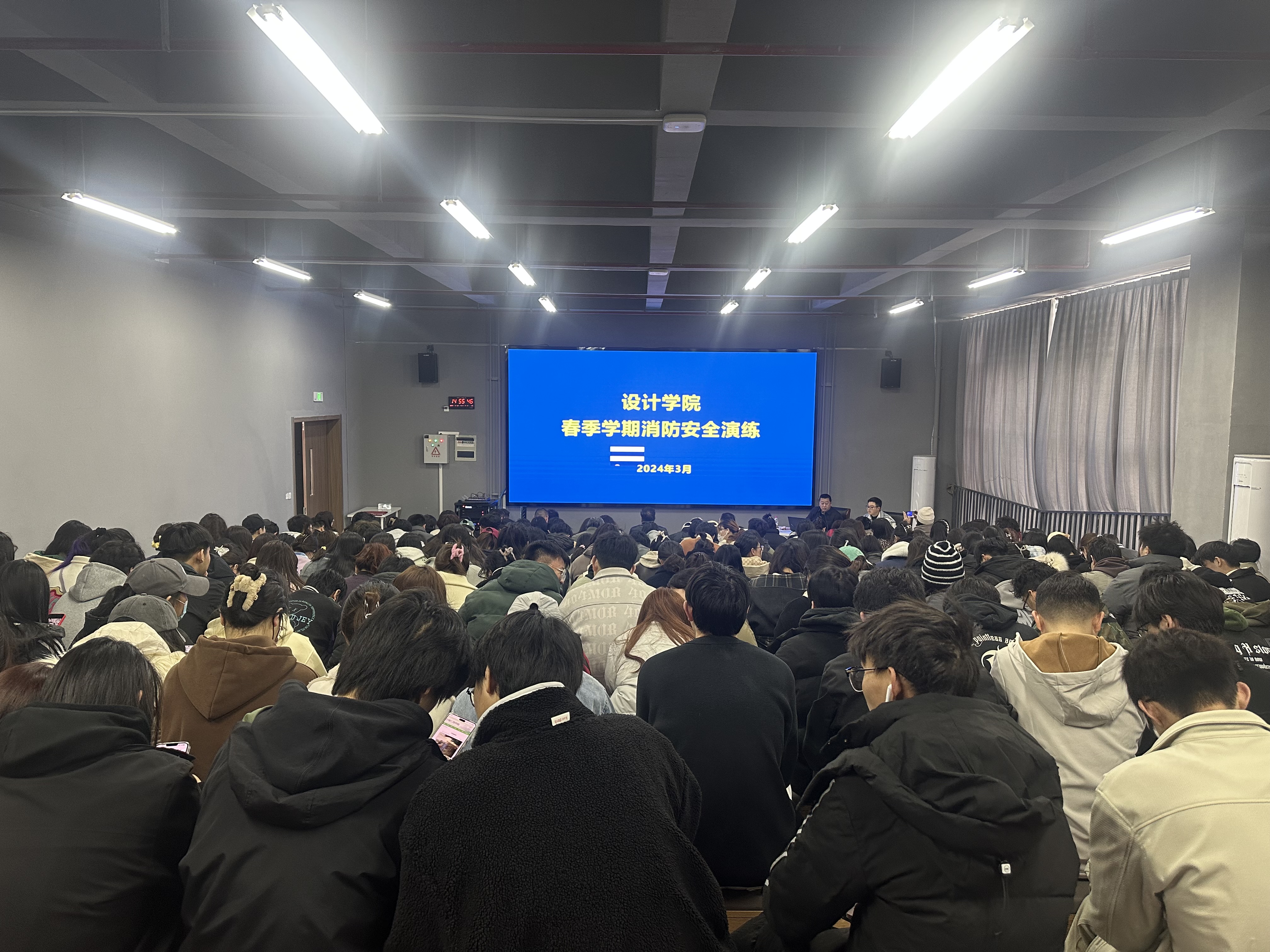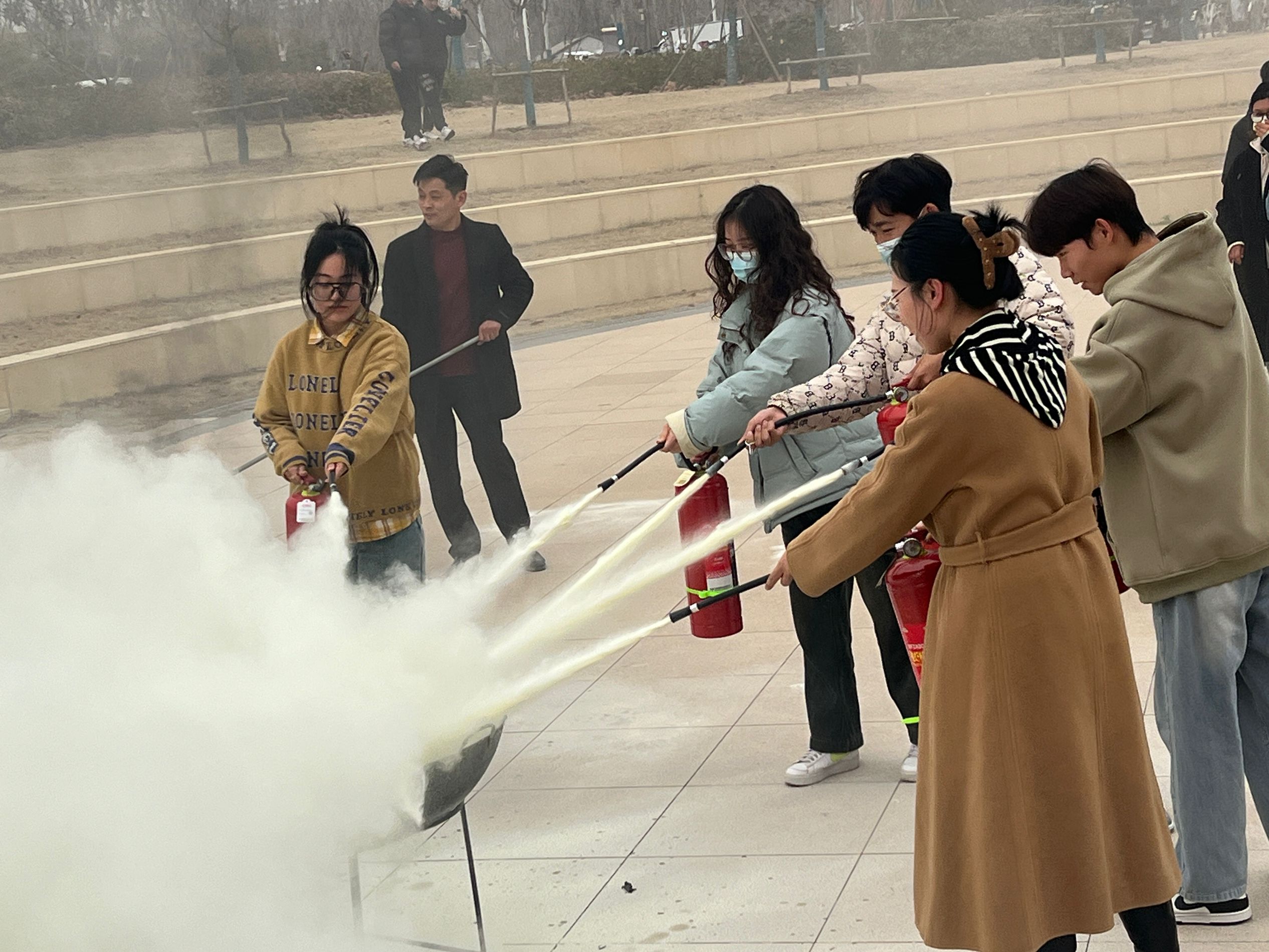 在培训环节,保卫处李迪老师从实际事例出发,讲解了发生火灾时的紧急处理方法和逃生路线,并指导师生们如何协作配合处理突发事故。在演练环节,首先在楼内模拟火灾现场,师生们通过学习到的消防知识和技能迅速有序地疏散撤离。然后参演师生来到下沉广场,在专业人员的指导下,学习并亲身体验了使用灭火器和消防水枪进行灭火。大家均表示,通过本次演练,对于应对突发火灾等灾难事件有了更清晰的认识,增强了自我保护的意识和能力。