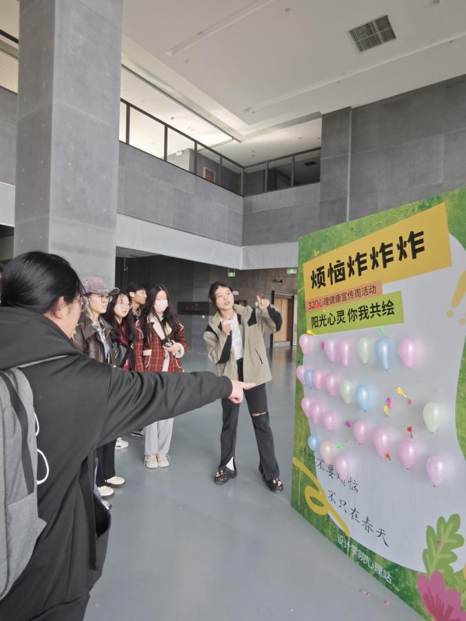 为加强老员工心理健康教育,营造健康和谐的校园氛围,公司于近期开展了“阳光心灵,你我共绘”320心理健康系列活动。3月20日下午,员工们相聚在敬艺楼一楼大厅,共同参与“烦恼炸炸炸”活动。