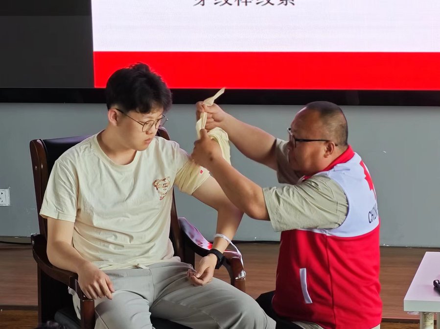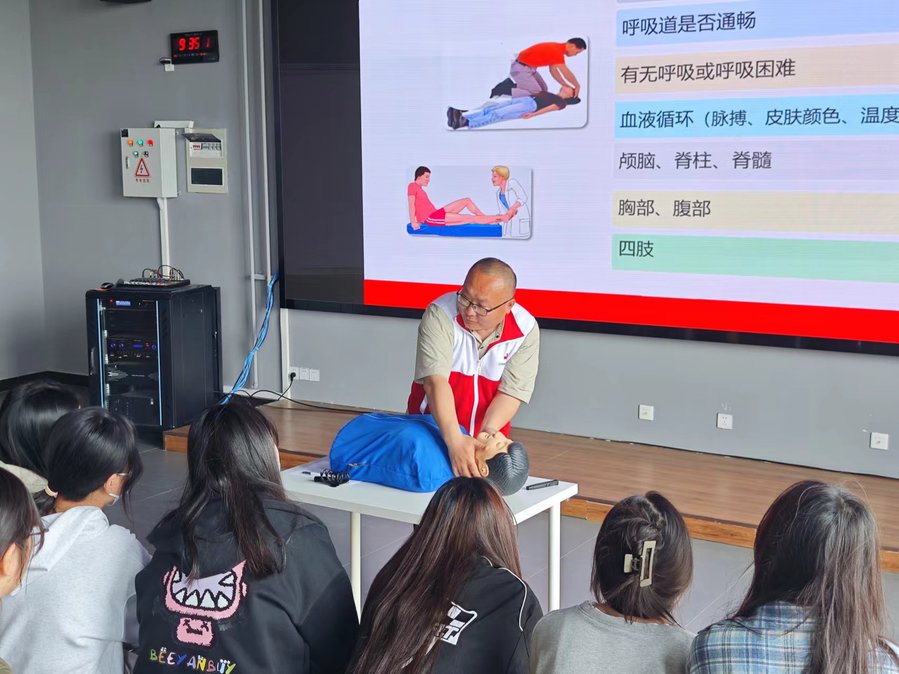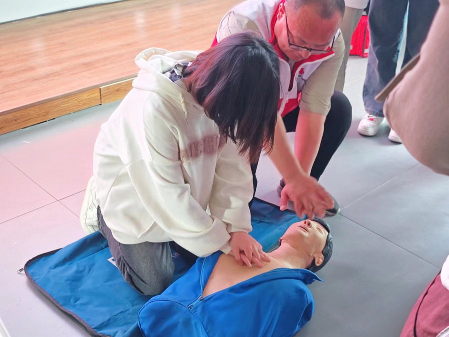 活动中,云龙区红十字救援队王强老师围绕常见的急救场景、心肺复苏、窒息抢救、溺水抢救等内容向员工们详细讲解了急救理论知识,并现场示范了包扎、三角巾的用法以及AED除颤仪的使用方法。
