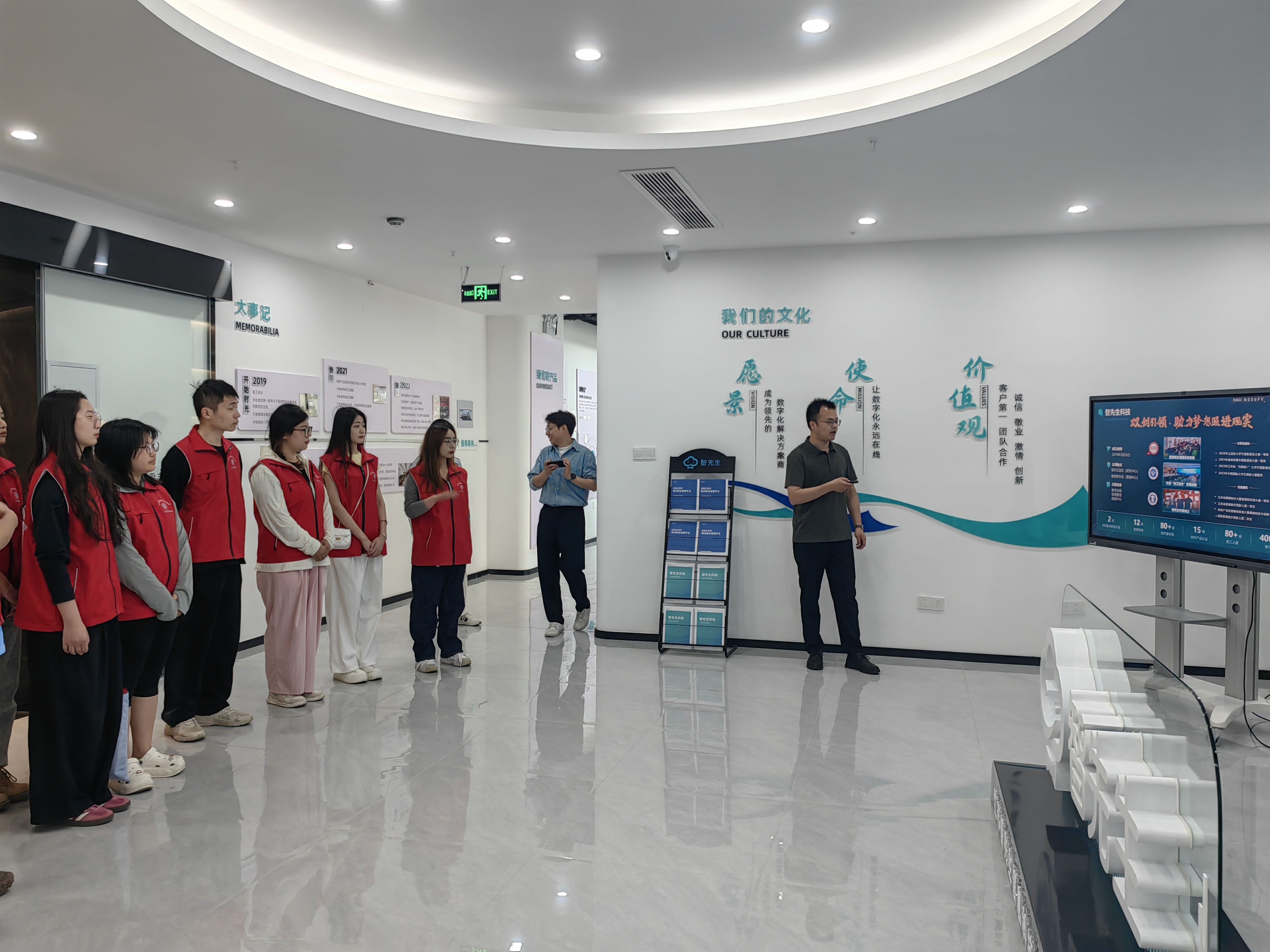 此次科普宣传进园区活动通过走访园区科技企业、发放科普书籍、现场交流座谈等形式,向同学们展示了云龙科技发展的创新成果,扩大活动的影响力和覆盖面。公司师生先后参观了赛科工厂创新中心内江苏智先生信息科技有限公司、江苏天竞云合数据技术有限公司等五家在孵优质科技企业。同学们认真倾听赛科工厂创新中心刘飞董事长及企业负责人介绍园区企业发展创新历程及创新成果,感知科技发展的前沿力量。
