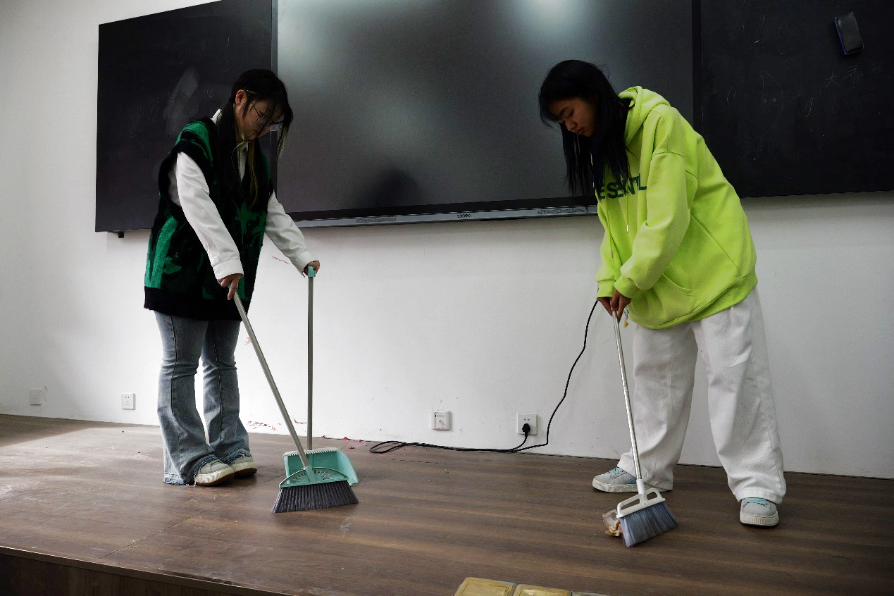团员们对敬艺楼教室进行了卫生清理工作,大家积极行动、分工配合,发挥不怕脏、不怕苦、不怕累的精神,在合理有序的分工下,重点对桌面和地面的“牛皮癣”和机房缝隙的垃圾进行清理,力争不留死角、不留盲区。