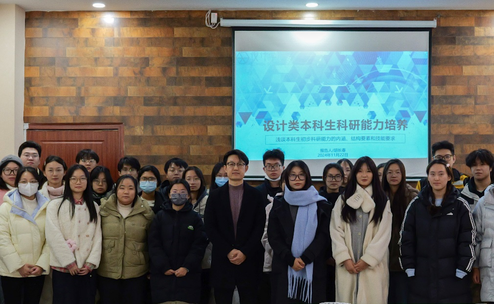 胡长春教授 以“设计类本科生科研能力培养”为题,从科研能力的内涵、结构要素和技能要求、科研能力培养的途径、培养科研能力的思考四个方面来展开讲授。胡长春教授结合案例深入浅出的让同学们明白科研能力的重要性,以及通过自己的经验和思考告诉同学们提高科研能力的具体方法,让同学们受益匪浅。