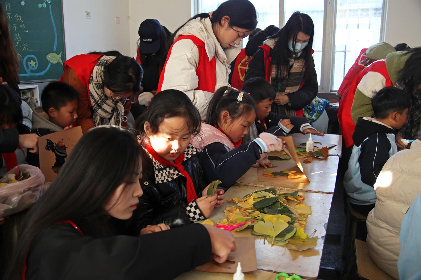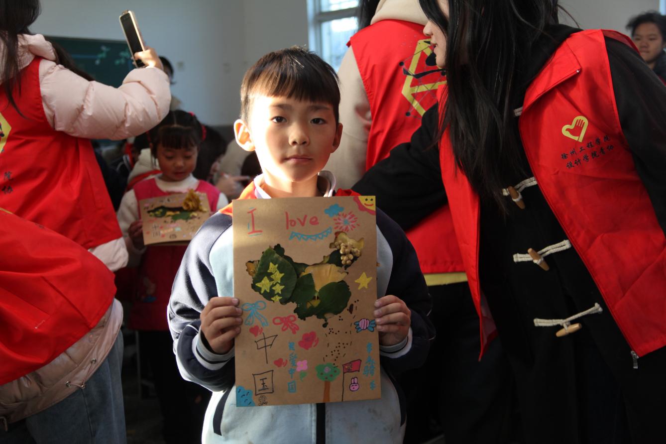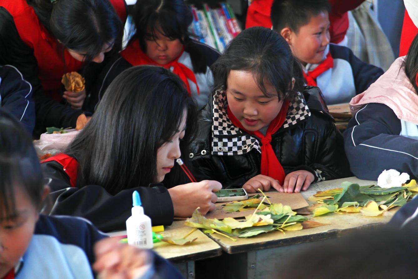 活动当天,吕梁小学的教室里,公司志愿者们带着精心准备的落叶、胶水、彩笔等材料,为二年级的同学们带来了一堂别开生面的手工课。课堂上,志愿者们首先向孩子们介绍了祖国的象征性图案,并详细讲解了落叶的来源和环保的重要性。随后,他们示范了如何利用落叶拼出祖国的形状,并引导孩子们动手尝试。